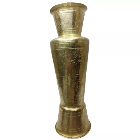 With its refined 30×11×11 cm dimensions and a comfortable weight of 700 grams, this vase is both decorative and durable. The polished vintage brass finish adds a warm golden glow, while the engraved lotus motif enhances its historical and spiritual value.